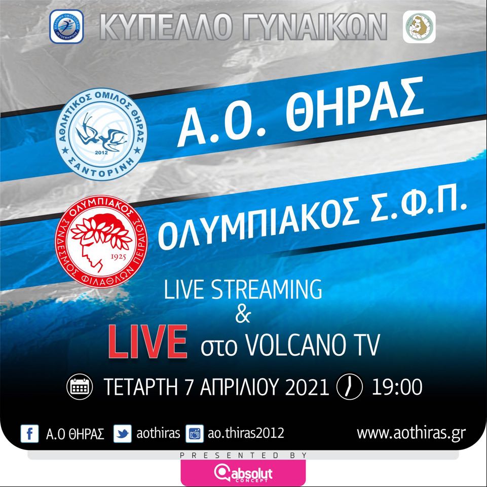 Την Παρασκευή 16 Απριλίου στις 20.00 σε απευθείας μετάδοση από την ΕΡΤ3 από το κλειστό δημοτικό γυμναστήριο Α’ Ηλιούπολης θα διεξαχθεί ο τελικός του Κυπέλλου Ελλάδας Γυναικών ανάμεσα στον Α.Ο. Θήρας και τον Π.Α.Ο.Κ.