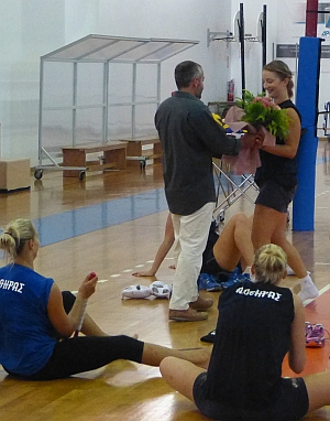 Μάλιστα θα πρέπει να αναφέρουμε ότι το Σάββατο η Αρτεμις Σκορδίλη είχε τα γενέθλια της και η διοίκηση της επιφύλασσε μία ευχάριστη έκπληξη, καθώς την ώρα της προπόνησης, διά του μάνατζερ Γιώργου Νομικού της πρόσφερε μία ανθοδέσμη.